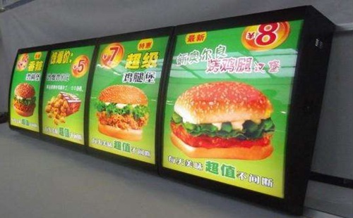 某些大中型的國際性快餐店,如肯德基和麥當勞,開始中國加入早餐和中餐系列文化產品,這就要求規定進行餐飲燈箱伴隨著時長的推移不斷改變管理菜單。